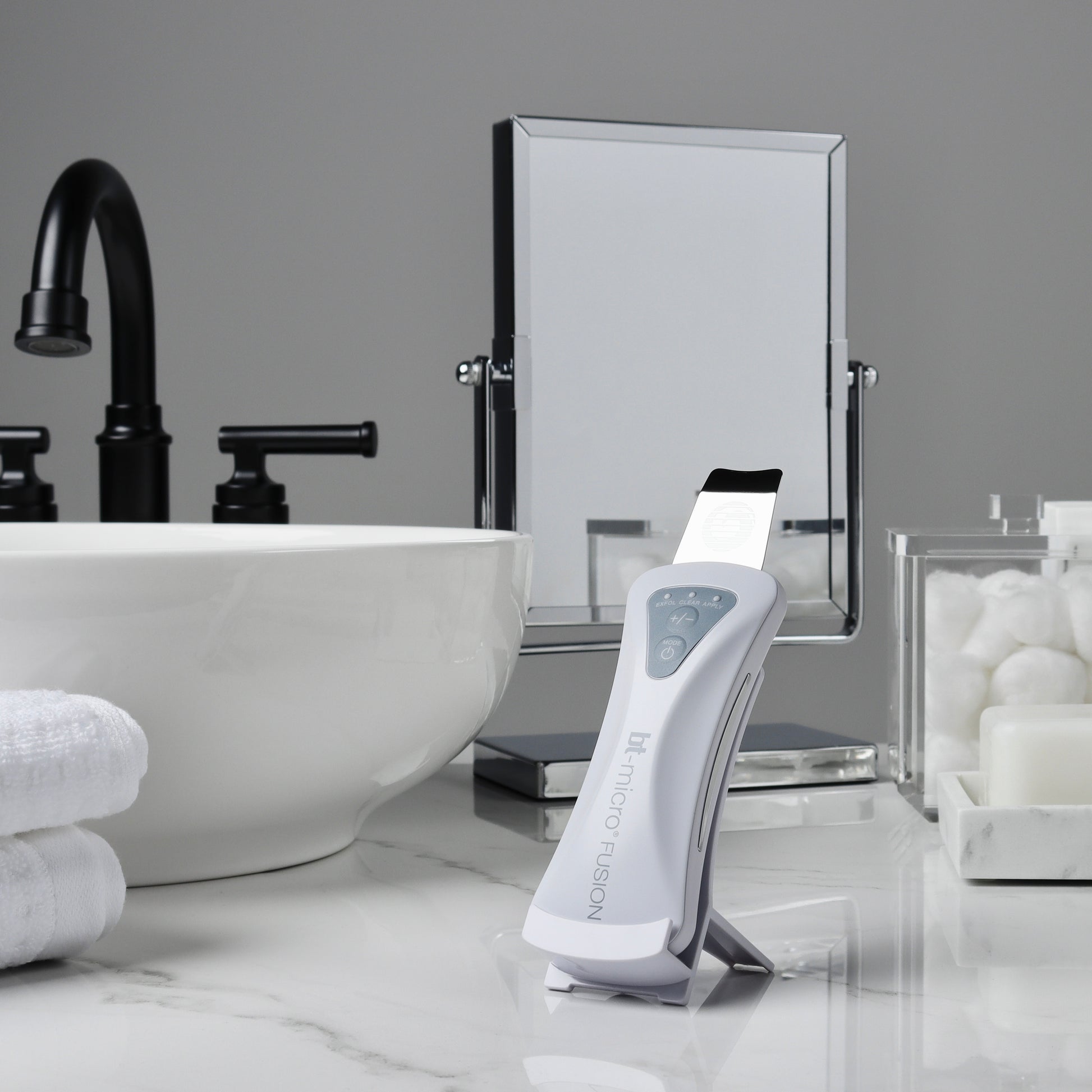 Der bt-micro fusion wurde für Schönheit und Leistung entwickelt und kombiniert erhabene Details, eine langlebige Legierungskonstruktion und eine perfekte Balance, wodurch er sich ideal für alle Hautpflegeprogramme eignet.